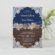Rustikale Navy Blue Wood Burlap Lace Hochzeit Einladung
