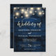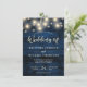 Rustikale Navy Blue Wood String Lights Hochzeit Einladung
