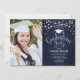 Rustikale Marineschule Einladung mit Ihrem Foto. Die Funktion besteht aus Holzmustern, String-Feen-Leuchten, Skript-Schriftart und einer Tassel-Kappe.