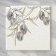 Ein wunderschöner, moderner Untersetzer aus rustikalem Stein mit handbemalten Olivenbäumen mit antiken Goldakzenten