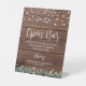 Getränke mit Unterschrift ! Moderner und dennoch rustikaler Eukalyptus und Lichter auf rustikalem Land mit eleganter Kalligraphie. Dieses Hochzeitszeichen mit offenem Bar in eleganter Kalligraphie und Tonights-Drinks sind kostenlos, die Geschichten von morgen sind unbezahlbar. Passen Sie dieses elegante Hochzeitszeichen mit Ihren Namen und Datum an! COPYRIGHT © 2020 Judy Burrows, Black Dog Art - Alle Rechte vorbehalten. Rustikales Open Bar Greenerity String Lights Wedding Pedestal Sign