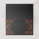 Elegante, dunkelorangefarbene Blumen auf schwarzer Hochzeitseinladung mit orangefarbenen Rose und Grün auf dunkelschwarzem Hintergrund für einen gotischen Hochzeitslook. Die Blume schmücken die Ecken und sorgen für ein elegantes, modernes und elegantes Ambiente. Ideal für einen Herbst, Halloween oder eine gotische Hochzeit.