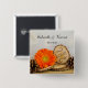 Personalisieren Sie den zauberhaften Rustikalen Orange Daisy Woodland Wedding Button, um einzigartige Gastgeschenke oder ein Sake-Geschenk für die frisch vermählten Braut und Bräutigam zu schaffen. Dieses lässige und dennoch elegante Outdoorwald oder der Waldhochzeitsknopf verfügt über ein malerisches, digital erweitertes Naturfoto einer orangefarbenen Blüte aus der Blume, Holzschnitzel mit dem Wort LIEBE, zwei braune Kiefernkegel und einen weißen Brautschleier mit einem Kraterrand und weißem Satin-Hintergrund.