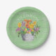 Diese personalisierten Teller mit Blumenmotiven im Ostergestein zeichnen sich durch ein rustikales Design aus einem weißen Korb aus gelben und lila Frühlingsblumen und Ostereiern in Gelb-, lila-, Grün- und Türkistönen aus. Ihr Familienname ist in weißer Typografie auf einem Imitat mit grün verwittertem Holz gehalten. Entworfen von dem weltbekannten Künstler ©Tim Coffey.