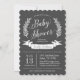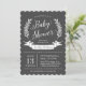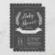 Chic rustikale Babydusche Einladung mit eleganter Typografie in einem weißen botanischen Kranz. Design hat einen Hintergrund für gedruckte Imitate mit Schalttafeln. Klicken Sie auf Anpassen, um Schriftart und Farben zu ändern, um ein einzigartiges Design zu erstellen.