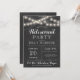Rustikale Ruhestand-Party Einladung mit Stringleuchten und einer Kombination aus Skript und offener Gesichtstypografie auf einem Chalkboard-Hintergrund. Ideal für die Pensionsstimmung von Männern oder Frauen. Für weitere Anpassungen klicken Sie bitte auf die Schaltfläche "Anpassen" und verwenden Sie unser einfaches Designwerkzeug, um diese Vorlage zu ändern.