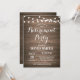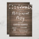 Rustikale Ruhekarte mit Party Einladung aus Holzhintergrund und Streichleuchten. Für weitere Anpassungen klicken Sie bitte auf die Schaltfläche "Anpassen" und verwenden Sie unser Designwerkzeug, um diese Vorlage zu ändern.