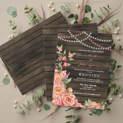 Barn wood Peony Rustic Wedding Invitations SetDesignt von Maria G