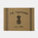 Herzlich willkommen in Ihrem Haus mit diesem charmanten rustikalen Bauernhaus Stil Türme. Personalisiertes Design zeigt Ihren Familiennamen oder landwirtschaftlichen Namen in schwarzer Schrift, zusammen mit Ihrem Jahr etabliert und eine Ananas Abbildung. Die Rockleiste, die auf einem klassisch-braunen Hintergrund detailliert dargestellt ist, rundet das Design ab.