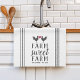 Mit diesem niedlichen personalisierten Küchentuch, das den Begriff "Farm Sweet Farm" in dunkelgrauem Schriftzeichen mit einem Hühnerpaar und einem roten Herz beherrscht, feiert man das Leben auf dem Bauernhof. Passen Sie Ihren Familiennamen und/oder das unten festgelegte Jahr an.