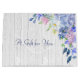 Schönes Spray von Aquarellfarben lila, blau-rosa Hydrangeas und Hyazinthen, weiße Rose und grüne Blätter auf einem rustikalen Hintergrund aus verwittertem Holz mit optionalem Textfeld für Ihren Namen oder Monogramm. Optionales Textfeld im Vordergrund und skalierbarer Hintergrund. Anmerkung: Skulptierte, eingravierte, geprägte und dimensionale Effekte, geschichtete, gealterte oder erodierte Erscheinung, Texturen und Schatten digital erzielt. Das Produkt hat eine glatte Oberfläche.