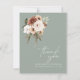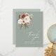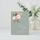 Rustikale Seite Grün und Pfirsichblüte Hochzeit Danke, Card. Mit dieser elegant gestalteten Hochzeitskarte laden Sie Ihre Gäste stilvoll zu einem Hochzeitstag ein, der eine schöne Mischung aus pfirsichgrünen und olivgrünen Blume auf einem wunderschönen grünen Hintergrund bietet. Dieses Dankeschön-Kartenspiel hat ein wunderschönes blumengeschmücktes und botanisches Design, mit rustikalen und bohenhaften Blicken, perfekt für Ihre Blumenhochzeit oder Wildblume inspiriert Hochzeit. Die minimalistische und moderne Einrichtung verleiht dem üppig pfirsichfarbenen, eleganten Set der Blumenarrangements auf einem markanten Weiß-grünen Hintergrund Aufmerksamkeit. Diese Hochzeitskarte Set den Ton für eine schöne Hochzeitslandschaft, umgeben von schlauer grüner Hochzeitsdekoration und Pfirsich und cremefarbenen Wildblumen. Eine perfekte Ergänzung zu jeder botanischen oder boho-chic Feier.