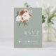 Rustikale Sage Green und Peach floral Wedding RSVP Card. Mit dieser elegant gestalteten Hochzeitskarte laden Sie Ihre Gäste stilvoll zu einem Hochzeitstag ein. Sie verbindet pfirsichgrüne und olivgrüne Blume auf wunderschönem grünem Hintergrund. Die Hochzeitskarte RSVP hat ein wunderschönes, blumengeschmücktes und botanisches Design, mit rustikalen und bohenhaften Vibes, perfekt für Ihre Hochzeit mit Blumen oder Wildblumen inspiriert. Die minimalistische und moderne Einrichtung verleiht dem üppig pfirsichfarbenen, eleganten Set der Blumenarrangements auf einem markanten Weiß-grünen Hintergrund Aufmerksamkeit. Diese Hochzeitskarte Set den Ton für eine wunderschöne Hochzeitslandschaft, umgeben von schlauer grüner Hochzeitsdekoration und pfirsichfarbenen und cremefarbenen Wildblumen. Eine perfekte Ergänzung zu jeder botanischen oder boho-chic Feier.