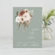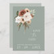 Rustikales Blatt Grün und Pfirsichblüten Hochzeit Speichern Sie die Datumskarte. Freuen Sie sich auf den stilvollen Hochzeitstag mit der elegant gestalteten Hochzeitskarte, die eine schöne Mischung aus pfirsichgrünen und olivgrünen Blume auf einem wunderschönen grünen Hintergrund bietet. Diese Hochzeitskarte rette-the-date und hat ein wunderschönes blumengeschmücktes und botanisches Design, mit rustikalen und bohenhaften Blicken, die perfekt für Ihre Blumenhochzeit oder Ihre Wildblume inspiriert Hochzeit geeignet sind. Die minimalistische und moderne Einrichtung verleiht dem üppig pfirsichfarbenen, eleganten Set der Blumenarrangements auf einem markanten Weiß-grünen Hintergrund Aufmerksamkeit. Diese Hochzeitskarte rette den Ton für eine wunderschöne Hochzeitslandschaft, umgeben von schlauer grüner Hochzeitsdekoration und pfirsichfarbenen und cremefarbenen Wildblumen. Eine perfekte Ergänzung zu jeder botanischen oder boho-chic Feier.