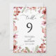 Diese individuell anpassbare Tischnummer Card ist für die Koordination mit unserer Hochzeitskollektion Pressed Floral Pink konzipiert und verfügt über würzige Aquarellblumen mit zarten, grünen Weinreben, gepaart mit einem modernen Script-Schriftart. Ideal für jede Jahreszeit. Um vorzeitige Änderungen vorzunehmen, wählen Sie Personalisieren -> Bearbeiten mit dem Entwurfstool.
