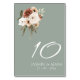 Rustikale Tischnummer Grün und Pfirsichblüten. Freuen Sie sich auf eine stilvolle Hochzeitsfeier mit einer eleganten Tischnummer, in der sich pfirsichgrüne und olivgrüne Blume auf einem wunderschönen grünen Hintergrund vereinen. Diese Hochzeitsfeier hat ein wunderschönes blumengeschmücktes und botanisches Design, mit rustikalen und bohenhaften Tischnummern, ideal für Ihre Hochzeit mit Blumen oder Wildblumen inspiriert. Die minimalistische und moderne Einrichtung verleiht dem üppig pfirsichfarbenen, eleganten Set der Blumenarrangements auf einem markanten Weiß-grünen Hintergrund Aufmerksamkeit. Diese Tischnummer wird den Ton für eine wunderschöne Hochzeitsfeier mit schlauer, grüner Hochzeitsdekoration und pfirsichfarbenen und cremefarbenen Wildblumen Set geben. Eine perfekte Ergänzung zu jeder botanischen oder boho-chic Feier.
