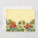 Elegante, bearbeitbare Mitteilungskarten mit dunkelbraunen Schriftzeichen mit einem unteren Rand aus orangefarbenen und weißen Mohnblüten und blauen Maisblüten, vorne und hinten auf einem rustikalen Imitat-Leinwand-Hintergrund.