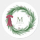 Rustikale Pine Holiday Wreath Monogram Familiennam Runder Aufkleber