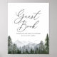 Fordern Sie an, dass Freunde und Familie Ihr Gästebuch mit diesem eleganten Schild unterschreiben, das mit den Aquarellbergen und Kiefernbäumen besticht.