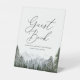 Fordern Sie an, dass Freunde und Familie Ihr Gästebuch mit diesem eleganten Schild unterschreiben, das mit den Aquarellbergen und Kiefernbäumen besticht.
