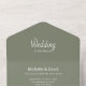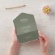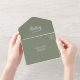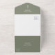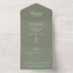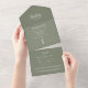 Rustikales Sage Green All in One Wedding Einladung, mit einem einfachen Kiefernbaum und einfachem Typografie-Design. Mit anpassbarer Schrift fügen Sie Ihre eigenen Informationen hinzu. Das Außenzentrum ist leer, damit Sie Gastadressen hinzufügen können. Es gibt auch eine abnehmbare RSVP-Karte für Ihre Gäste. Ideal, um die Planung für Ihren besonderen Tag zu vereinfachen.