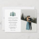 Elegante Aquarellkiefer / Fichtenbaum Hochzeitskarten mit Pärchen Foto/Bild in weißem Rahmen. Tief grüne Farben mit schwarzem Text und weißem Hintergrund. Ideal für dieses rustikale Winterhochzeitthema. Alle Texte, Farben und Größen können bearbeitet werden. Weitere Informationen finden Sie in der Sammlung 'LAUREN'.