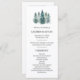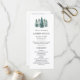 Geben Sie diese eleganten Zeremonie Programm Rack Karten bei Ihrer Hochzeit. Rustikale Pinienwälder / Waldberge. An der Vorderseite der Karte befindet sich die Zeremonie-Programmliste, auf der Rückseite der Karte befindet sich die Liste der Hochzeitsfeier und ein Dankeschön an die Braut und den Bräutigam. Ideal für jede Winterhochzeit.