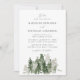 Elegante, rustikale Einladungen für Hochzeiten, die Ihre Namen und Hochzeitsdetails in schwarzem Text mit dunklem Jägergrün und Salbei Aquarellkiefern unten zeigen. Die Herbst- oder Winterhochzeit lädt mit einer schönen modernen Kalligraphie-Schrift ein. Die Waldhochzeit lädt zu einem dunklen Jäger-grünen Hintergrund zurück. Entworfen, um sich mit unserer Hochzeitskollektion Rustic Pine Forest abzustimmen.