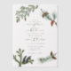 Ein schönes Kiefernwald-Design mit rustikalen Kiefernästen, Kiefernzapfen und Kiefernnadeln. Ein elegantes Design im Grünen, ideal für jedes Hochzeitsthema. Die Rückseite der Karte zeigt ein minimalistisches Monogramm. Es stehen auch passende Hochzeitsstilleriedateien und andere Hochzeitsformate zur Verfügung.