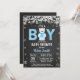 Rustikales Polar Bear Winter Boy Baby Einladung. Weißer Schneeflocken. Baby seine Kälte vor der Baby Dusche Einladung.Einladung zur Kinderdusche. Winter Holiday Baby Dusche einladen. Hintergrund der Zwischenablage.Schwarz und Weiß.