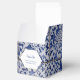 Dieses Design zeichnet sich durch rustikale portugiesische Fliesenmuster aus. Der Hochzeitstext ist elegant gerahmt mit einer geometrischen Form in Weiß und Gold. Einzigartiges Azulejo Blau und Weiß Gastgeschenk Hochzeit Box Design mit modernen Elementen. Auch die passenden Hochzeitseinladungen und andere Schreibwaren sind verfügbar.