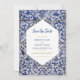 Dieses Design zeichnet sich durch rustikale portugiesische Fliesenmuster aus. Der Hochzeitstext ist elegant gerahmt mit einer geometrischen Form in Weiß und Gold. Einzigartige Azulejo Blau-Weiß Blumen Hochzeit speichern die Dattelkarte Design mit modernen Elementen. Auch die passenden Hochzeitseinladungen und andere Schreibwaren sind verfügbar.