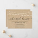 Rustikales Probe Dinner Einladung - Lichter auf kraftvollem Hintergrund, um Ihre Gäste zu Ihrem wunderbar rustikalen Hochzeitsessen Probe einladen.