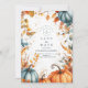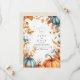 Feiern Sie Ihre Liebe mit einem gemütlichen Herbstdesign mit Wasserfarbenkürbis, Herbstlauben und warmen saisonalen Akzenten. Mit seinem weichen, eleganten Layout und dem vollständig bearbeitbaren Text ist es perfekt für eine rustikale Ernte oder eine Hochzeit im Oktober.