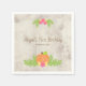 Diese niedliche Erstgeburtenserviette zeigt eine Grafik eines hellen orangefarbenen Kürbiss mit rosa Blume auf rustikalem Hintergrund. Personalisieren Sie diese bezaubernde Party-Serviette mit dem Namen des Kindes.