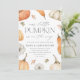 Charmante Herbstdusche-Einladungen nutzen sowohl die Vorder- als auch die Rückseite der Karte, um den Bedarf an Gehäusekarten zu vermeiden. Das Design umfasst eine Grenze aus gedämpften Cremes und orangefarbenen Kürbissen und Herbstlauben, die Details der Babydusche sind in grauem Buchstaben gehalten. "Unser kleiner Kürbis ist unterwegs" erscheint oben. Perfekt für Herbst- oder Halloween-Saisonduschen. Passen Sie die Rückseite mit zusätzlichen Details an, einschließlich eines benutzerdefinierten QR-Codes für Ihre Registrierung. Mit Textfeldern für eine Windelverlosung, Büchern für das Baby und einer unverpackten Geschenkanfrage.
