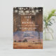 Diese rustikale westliche Scheunenholz-Hochzeitseinladung mit einer Western-Ranch-Bergszene und Lichterketten auf einem Scheunenholz-Hintergrund kann mit Ihren Informationen in stilvoller Typografie personalisiert werden. Entworfen von Thisisnotme©