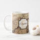 Diese Tasse zeigt eine rustikale Vintage Karte mit Sepia-Markierungen. Der Anfangsbuchstabe und -name sind Set in einem schwarzen Doppelrahmen mit weißer Mitte. Der erste Buchstabe in Bräune ist Set hinter dem Namen in dunkelbraun. Das ist auf beiden Seiten des Griffs. Füllen Sie beide Textfelder aus oder entfernen Sie ein oder andere Textelemente. Die Änderungen werden den Text für beide Seiten ausfüllen.