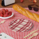 Rustikale Reverie | Aufnahme des Bauernhauses Rot Pappteller