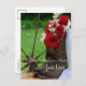 Verkünden Sie Ihre nächsten Nuptials mit den charmanten rustikalen Rose und Cowboy Boots Country Western Hochzeit Speichern Sie das Datum Postkarte. Diese lässige und dennoch elegante Hochzeit zum Thema Ranch behalte dem Datum der Postkarte ein malerisches Blumenfoto mit braunen Lederkuschelstiefeln, gefüllt mit einem Bouquet aus rote Rose und weißen Blume-Atem-Blüten und einem weißen Brautschleier mit einem rostigen alten Wagenrad und einem verwischten grünen natürlichen Hintergrund. Perfekte Inspiration für Ihren informellen Bauernstil oder die Stallehe Party Ehe Zeremonie und Empfang.