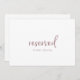 Diese rustikale Rose goldenes Drehbuch vorbehalten Zeichen ist perfekt für eine Landeshochzeit. Die Karte ist zweiseitig (beidseitig gedruckt). Das schlichte und moderne Rose-Gold-Rosa-Weiß-Design besticht durch eine einzigartige handgeschriebene Kalligraphie, die in einem zeitgenössischen minimalistischen Boho-Stil gehalten ist. Anpassbar in jeder Farbe. Behalt das Design minimal und simpel, wie es ist, oder personalisiere es durch Hinzufügen von eigenen Grafiken und Kunstwerken. Benutzen Sie diese Karten, um Stühle oder Tische bei Ihrer Hochzeitsfeier, Empfang oder jeder Veranstaltung zu reservieren.