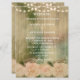 Eine elegante rustikale Hochzeitseinladung mit Holzboden, sanften rosa Rosen und einer Reihe von Lichtern. Diese Hochzeitseinladung ist Teil eines kompletten Set,