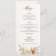 Die Romantik einer Herbsthochzeit wird in diesem eleganten Design mit Aquarellfarben und Grün in warmen Herbstfarben von Terrakotta, Elfenbein, Rost, Kastanien, staubblau und Salbei grün mit Touchs goldener Glitzern eingefangen. Dieses Design verfügt auch über eine einzigartige Textgrafik in einem benutzerdefinierten Schriftart für Kalligrafien mit Farbe, die im Designeditor angepasst werden kann. Enthält Textfelder für Menüelemente.