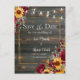 Unsere rustikale Rose und Aster Wedding Save the Date Card ist ein stilvoller Weg, um Ihre fröhliche Veranstaltung zu feiern und zu teilen. Dieses wunderschöne Goldrahmen besticht durch eine atemberaubende Auswahl an bezaubernden rote Rosen und hübschen gelben Stiern auf einem zauberhaften Holzgelände.