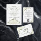 Die Einladung zur Hochzeit bietet ein rustikales Blumendesign mit handgemalten Rose und Blume in Weiß-, Elfenbein- und Cremetönen mit Eukalyptus-Blätter Laub und Grün. Die Schrift wird in extravaganter Schriftzeichen mit klassischem weißem Hintergrund erstellt. Die Rückseite des Einladens ist eine marmorierte Salbei grün Farbe mit einem Blumenstrauß und Blätter mit einem Satin-Bogen verbunden.