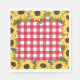Rustikale Servietten für Babyduschen im Hinterhof, Grillen-Verlobungs-Partys, rustikale Hochzeiten und vieles mehr mit rotem Gingham und Sonnenblumen.