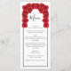 Dieses Design zeichnet sich durch rustikale rote Rosen aus. Die rote Rosen werden durch einen eleganten, schwarz gezogenen Rahmen ergänzt. Die Rottöne der Blume der Rose schaffen ein rustikales, blumengeschmücktes Ambiente. Elegantes Hochzeitsmenü-Kartendesign mit modernen Elementen. Auch die passenden Hochzeitseinladungen und andere Schreibwaren sind verfügbar.