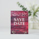 Rustikale rote Holzzeichenleuchten beim Hochzeitssehen speichern Sie die Datumspostkarte. Dieses klassische Design ist mit einem Imitat aus tiefrotem Holz mit Streichellichter und einigen verstreuten Holzsternen ausgestattet. Klassische Typografie, Fügen Sie Ihre Namen, Ihr Hochzeitstermin und jede zusätzliche Nachricht zur Postkarte hinzu und schicken Sie sie an Ihre Familie und Freunde, um Ihre nächsten Neuerscheinungen anzukündigen.