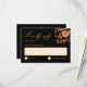 Diese elegante RSVP-Karte mit einem schwarzen Hintergrund, der mit einem handbemalten Aquarellbouquet in warmen Rost- und Orangetönen geschmückt ist, eignet sich perfekt für eine Herbst- oder Herbsthochzeit. Passen Sie die Formulierung einfach an Ihre Feier an.