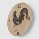 Rustikale Landküchenuhr in antikem Stil mit dunkelbraunem Schablonenhahn in der Mitte und dunkelbraunen Zahlen. Passen Sie diese warme Landuhr mit Ihrem eigenen Text an oder verließ, wie es ist. Eine passende Küchendekoration ist vorhanden.